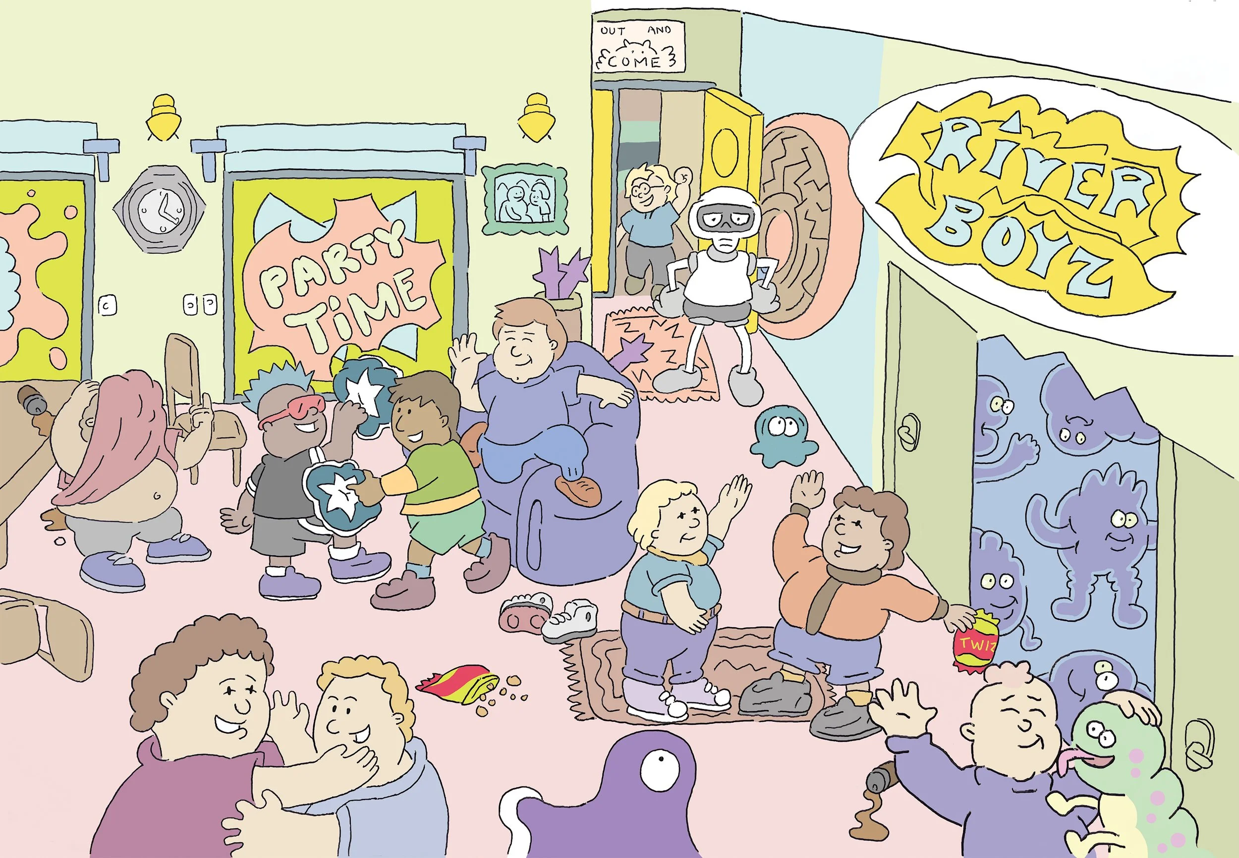 Tony walks through the front door, screams: The River Boys Forever!!